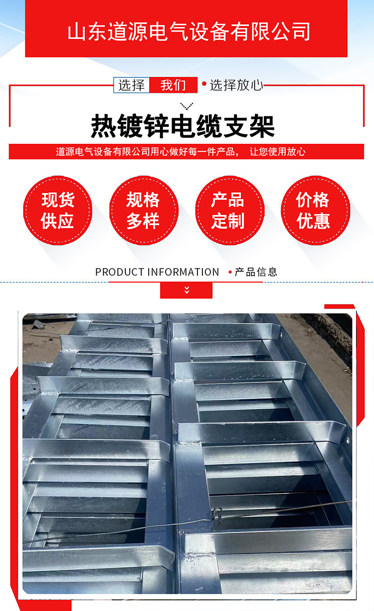 山東道源電氣設備有限公司位于山東、河北、河南三省交接地段,美麗的江北水城-運河古都 聊城,交通便利。我公司的橋架產(chǎn)品廣泛用于練油、化工、食品、紡織、機械、冶金、高層建筑、電力通訊、廣播等工礦電纜橋架室內(nèi)外電纜架空放設,也可作為電纜溝電纜遂道內(nèi)支架使用。